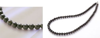 上ノ国シリカ(黒鉛珪石)+グリーンアゲート(緑メノウ):黒鉛珪石 Φ 5mm、 グリーンアゲート'(緑メノウ)Φ 10mm |